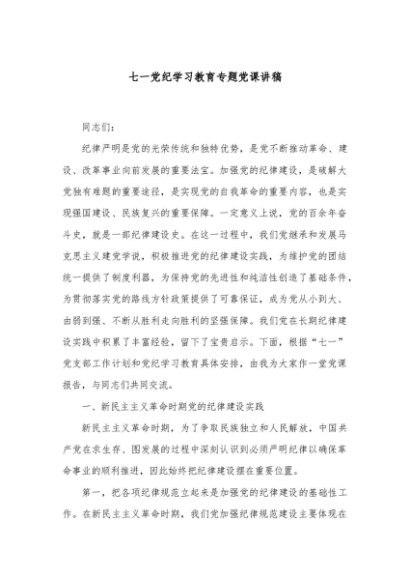 【七哥公文】2024年:七一党纪学习教育专题党课讲稿+更多免费公文+VX:QiGeGongWen2024