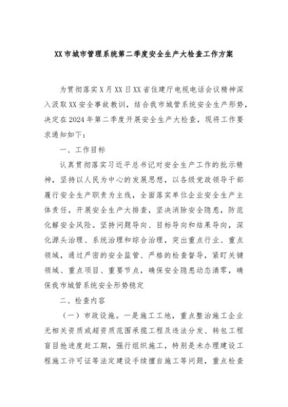 / 【七哥公文】2024年:XX市城市管理系统第二季度安全生产大检查工作方案+更多免费公文+VX:QiGeGongWen2024