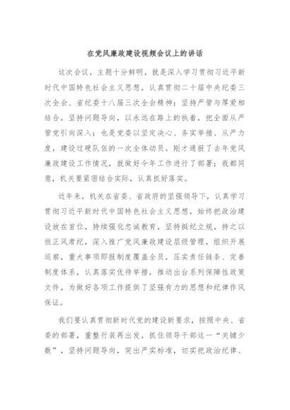 / 【七哥公文】2024年:在党风廉政建设视频会议上的讲话+更多免费公文+VX:QiGeGongWen2024