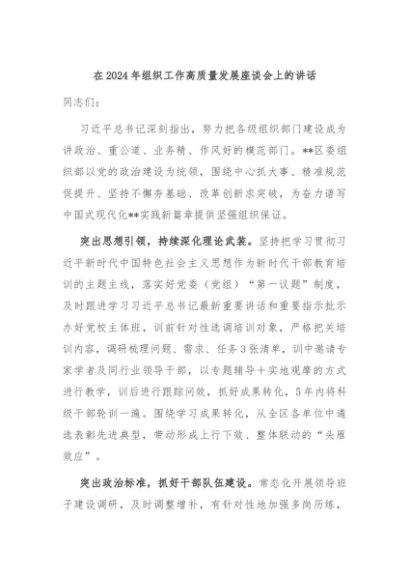 / 【七哥公文】2024年:在2024年组织工作高质量发展座谈会上的讲话+更多免费公文+VX:QiGeGongWen2024