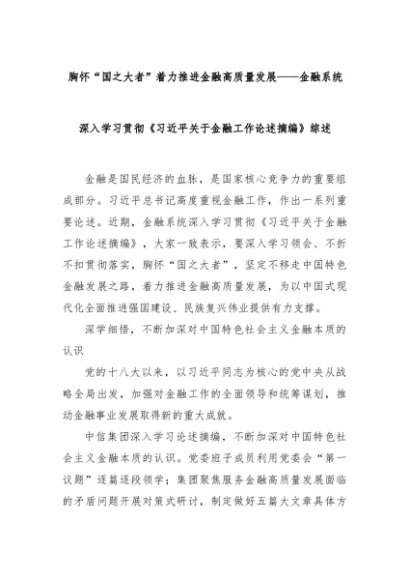 【七哥公文】2024年:胸怀“国之大者”着力推进金融高质量发展——金融系统深入学习贯彻《习近平关于金融工作论述摘编》综述+更多免费公文+VX:QiGeGongWen2024