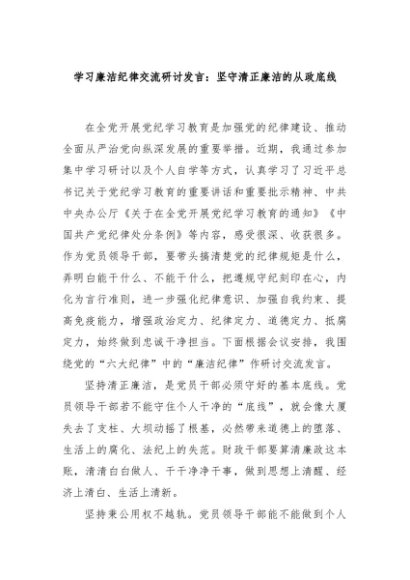 / 【七哥公文】2024年:学习廉洁纪律交流研讨发言:坚守清正廉洁的从政底线+更多免费公文+VX:QiGeGongWen2024
