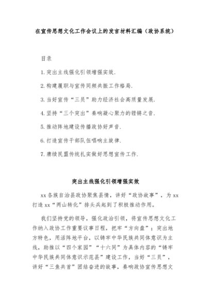 【七哥公文】2024年:在宣传思想文化工作会议上的发言材料汇编(政协系统)+更多免费公文+VX:QiGeGongWen2024
