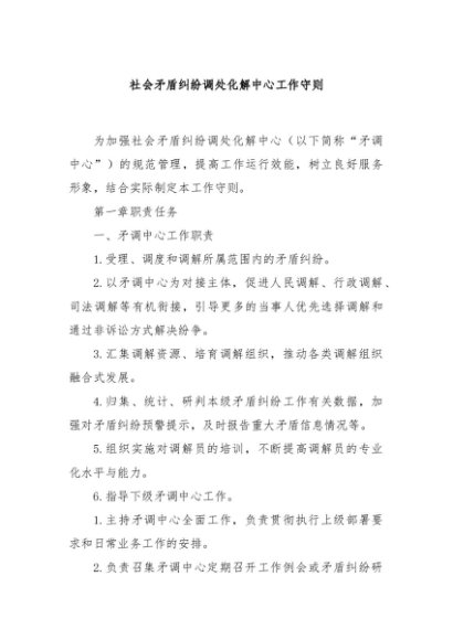/ 【七哥公文】2024年:社会矛盾纠纷调处化解中心工作守则+更多免费公文+VX:QiGeGongWen2024