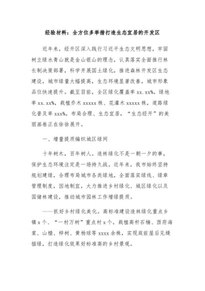 / 【七哥公文】2024年:经验材料:全方位多举措打造生态宜居的开发区+更多免费公文+VX:QiGeGongWen2024