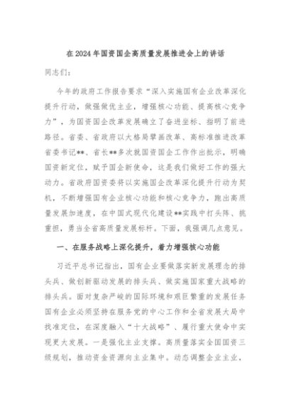 / 【七哥公文】2024年:在2024年国资国企高质量发展推进会上的讲话+更多免费公文+VX:QiGeGongWen2024