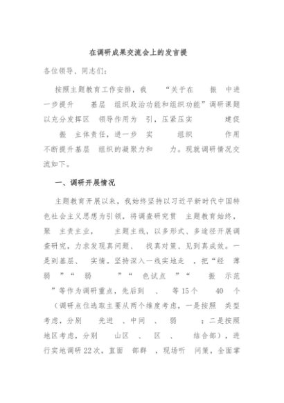 【七哥公文】2024年:在调研成果交流会上的发言提纲+更多免费公文+VX:QiGeGongWen2024