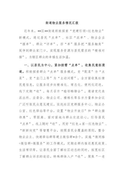 / 【七哥公文】2024年:街道物业服务情况汇报+更多免费公文+VX:QiGeGongWen2024