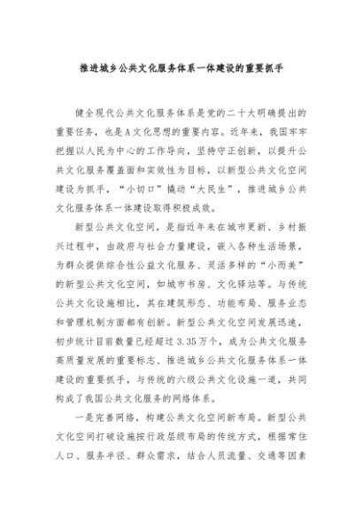 / 【七哥公文】2024年:推进城乡公共文化服务体系一体建设的重要抓手+更多免费公文+VX:QiGeGongWen2024