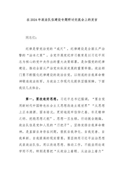 / 【七哥公文】2024年:在2024年政法队伍建设专题研讨交流会上的发言+更多免费公文+VX:QiGeGongWen2024