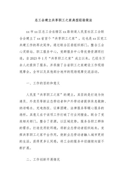/ 【七哥公文】2024年:总工会建立共享职工之家典型经验做法+更多免费公文+VX:QiGeGongWen2024
