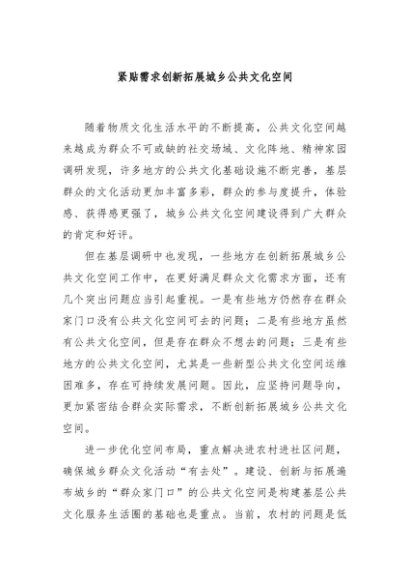 / 【七哥公文】2024年:紧贴需求创新拓展城乡公共文化空间+更多免费公文+VX:QiGeGongWen2024