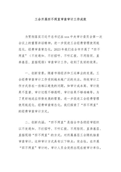 / 【七哥公文】2024年:工会开展四不两直审查审计工作成效+更多免费公文+VX:QiGeGongWen2024