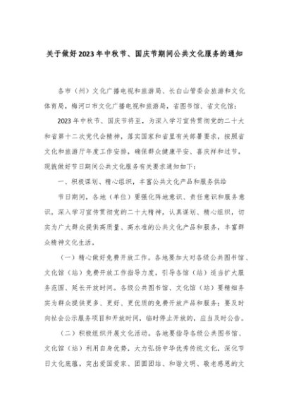 【七哥公文】2024年:关于做好2023年中秋节、国庆节期间公共文化服务的通知+更多免费公文+VX:QiGeGongWen2024