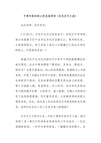 / 【七哥公文】2024年:中青年培训班上的总结讲话(红色岁月之旅)+更多免费公文+VX:QiGeGongWen2024