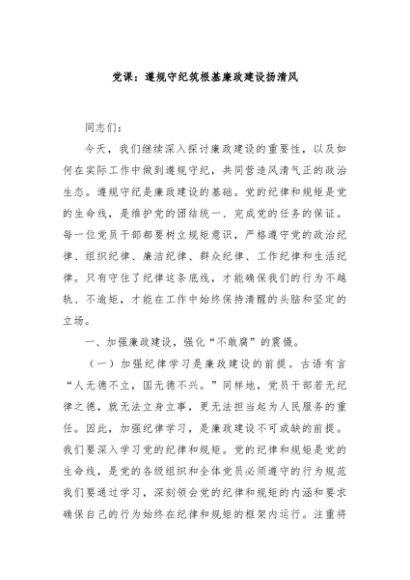 / 【七哥公文】2024年:党课:遵规守纪筑根基廉政建设扬清风+更多免费公文+VX:QiGeGongWen2024