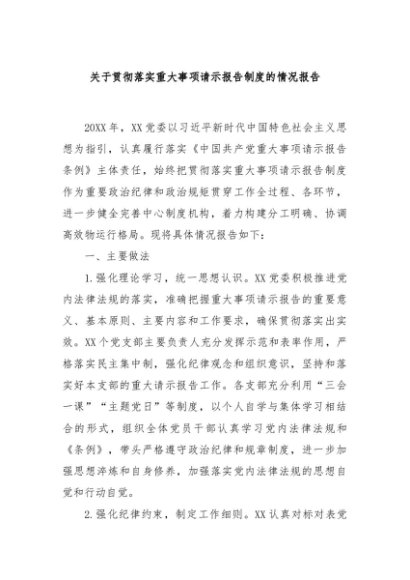 / 【七哥公文】2024年:关于贯彻落实重大事项请示报告制度的情况报告+更多免费公文+VX:QiGeGongWen2024