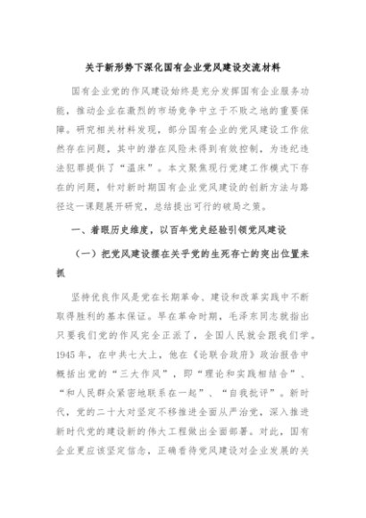 / 【七哥公文】2024年:关于新形势下深化国有企业党风建设交流材料+更多免费公文+VX:QiGeGongWen2024
