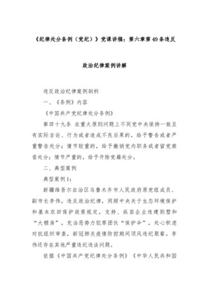 【七哥公文】2024年:《纪律处分条例(党纪)》党课讲稿:第六章第49条违反政治纪律案例讲解+更多免费公文+VX:QiGeGongWen2024