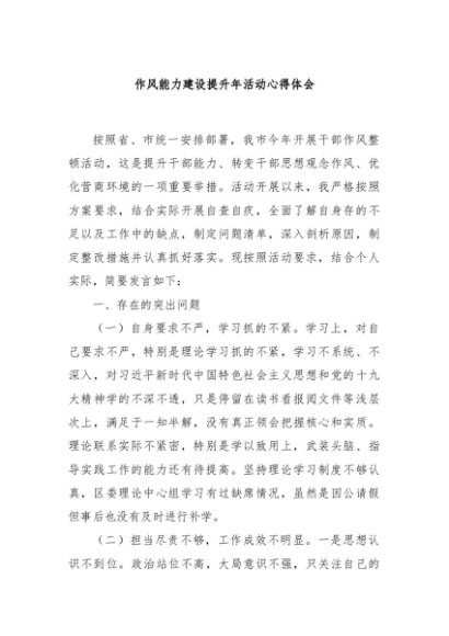 【七哥公文】2024年:作风能力建设提升年活动心得体会+更多免费公文+VX:QiGeGongWen2024