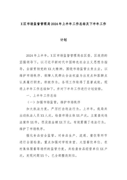 【七哥公文】2024年:X区市场监督管理局2024年上半年工作总结及下半年工作计划+更多免费公文+VX:QiGeGongWen2024