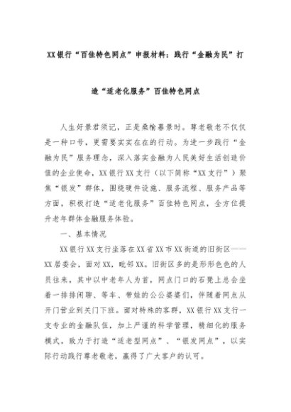 【七哥公文】2024年:XX银行“百佳特色网点”申报材料:践行“金融为民”打造“适老化服务”百佳特色网点+更多免费公文+VX:QiGeGongWen2024