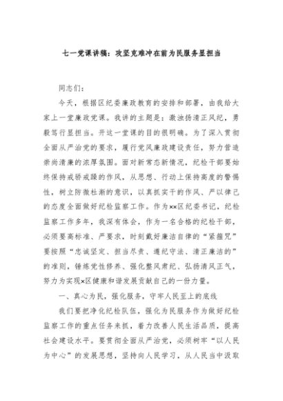 / 【七哥公文】2024年:七一党课讲稿:攻坚克难冲在前为民服务显担当+更多免费公文+VX:QiGeGongWen2024