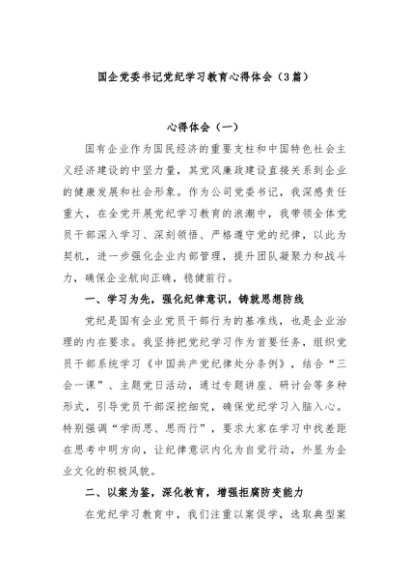 / 【七哥公文】2024年:(3篇)国企党委书记党纪学习教育心得体会+更多免费公文+VX:QiGeGongWen2024