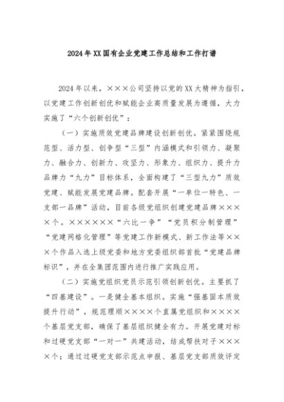 / 【七哥公文】2024年:2024年XX国有企业党建工作总结和工作打谱+更多免费公文+VX:QiGeGongWen2024