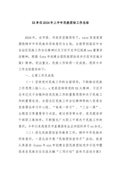 / 【七哥公文】2024年:XX单位2024年上半年民族团结工作总结+更多免费公文+VX:QiGeGongWen2024
