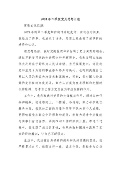 / 【七哥公文】2024年:2024年二季度党员思想汇报+更多免费公文+VX:QiGeGongWen2024