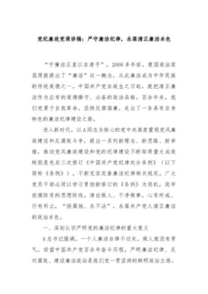 / 【七哥公文】2024年:党纪廉政党课讲稿:严守廉洁纪律,永葆清正廉洁本色+更多免费公文+VX:QiGeGongWen2024