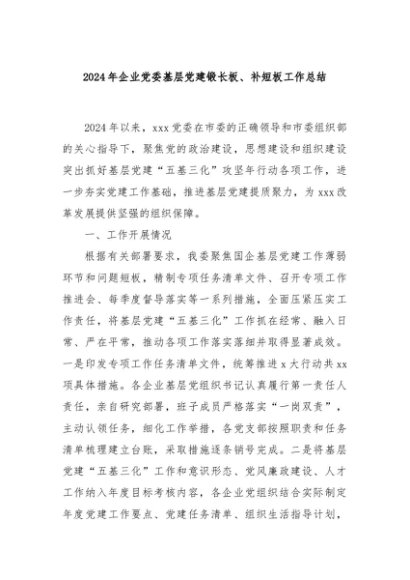 / 【七哥公文】2024年:2024年企业党委基层党建锻长板、补短板工作总结+更多免费公文+VX:QiGeGongWen2024