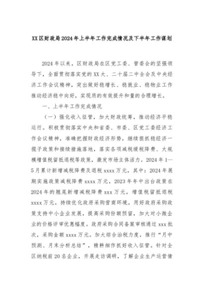 【七哥公文】2024年:XX区财政局2024年上半年工作完成情况及下半年工作谋划+更多免费公文+VX:QiGeGongWen2024