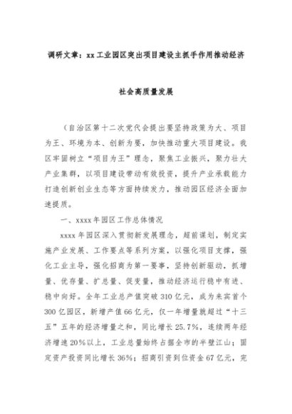 【七哥公文】2024年:调研文章:xx工业园区突出项目建设主抓手作用推动经济社会高质量发展+更多免费公文+VX:QiGeGongWen2024