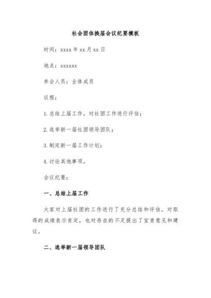 / 【七哥公文】2024年:社会团体换届会议纪要模板+更多免费公文+VX:QiGeGongWen2024