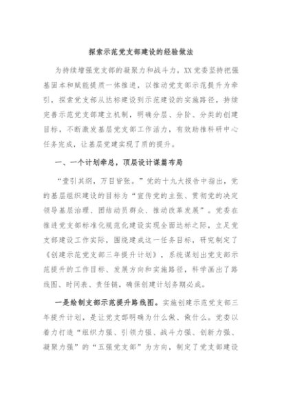 / 【七哥公文】2024年:探索示范党支部建设的经验做法+更多免费公文+VX:QiGeGongWen2024