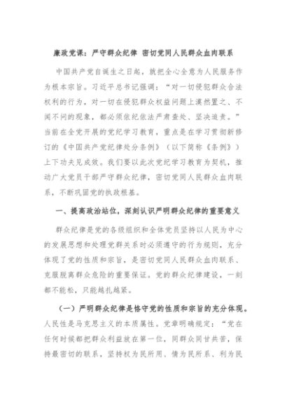 / 【七哥公文】2024年:廉政党课:严守群众纪律 密切党同人民群众血肉联系+更多免费公文+VX:QiGeGongWen2024