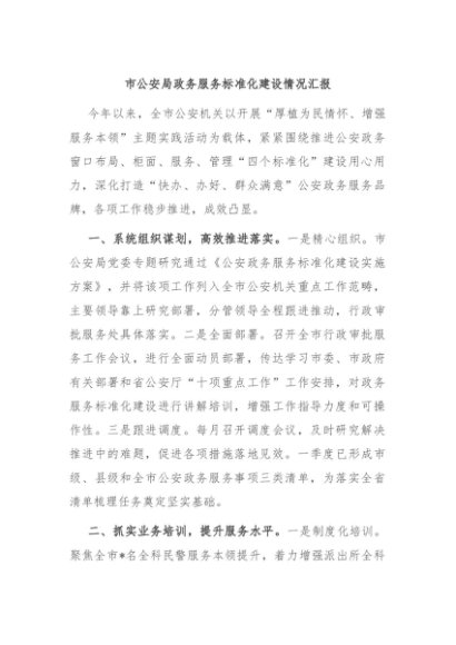 / 【七哥公文】2024年:市公安局政务服务标准化建设情况汇报+更多免费公文+VX:QiGeGongWen2024