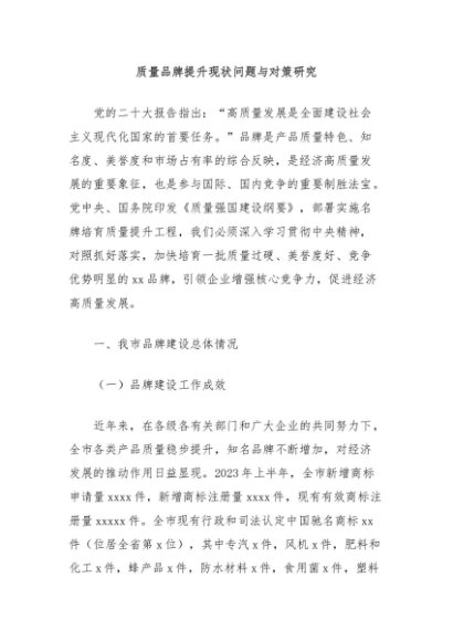 / 【七哥公文】2024年:质量品牌提升现状问题与对策研究+更多免费公文+VX:QiGeGongWen2024