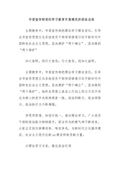/ 【七哥公文】2024年:市委宣传部党纪学习教育开展情况阶段性总结+更多免费公文+VX:QiGeGongWen2024