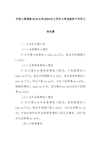 【七哥公文】2024年:平安人寿保险XX分公司2024年上半年工作总结和下半年工作打算+更多免费公文+VX:QiGeGongWen2024
