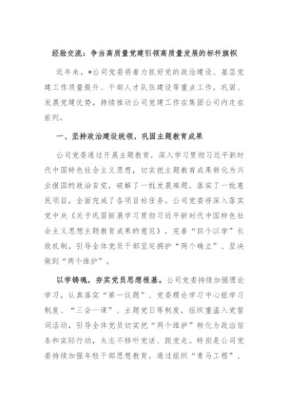 / 【七哥公文】2024年:经验交流:争当高质量党建引领高质量发展的标杆旗帜+更多免费公文+VX:QiGeGongWen2024