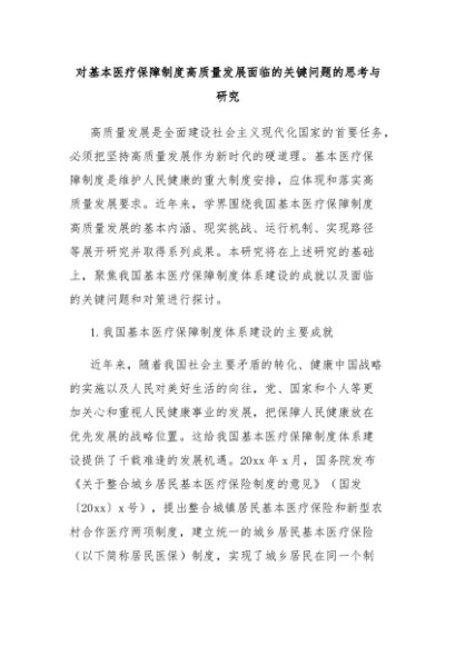 【七哥公文】2024年:对基本医疗保障制度高质量发展面临的关键问题的思考与研究+更多免费公文+VX:QiGeGongWen2024