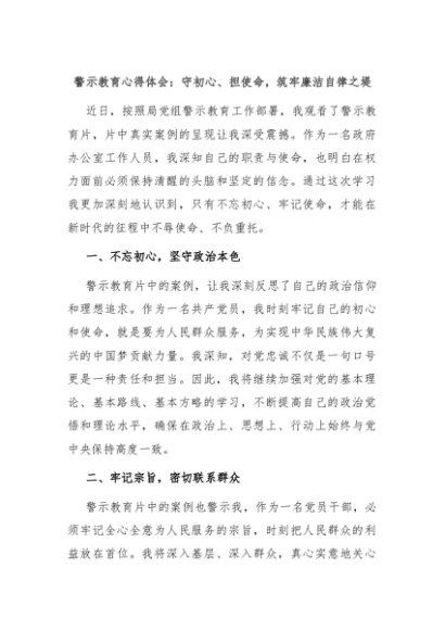 【七哥公文】2024年:警示教育心得体会:守初心、担使命,筑牢廉洁自律之堤+更多免费公文+VX:QiGeGongWen2024
