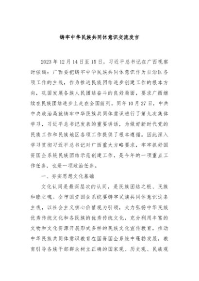 / 【七哥公文】2024年:铸牢中华民族共同体意识交流发言+更多免费公文+VX:QiGeGongWen2024