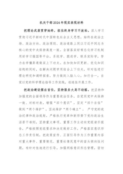 / 【七哥公文】2024年:机关干部2024年现实表现材料+更多免费公文+VX:QiGeGongWen2024