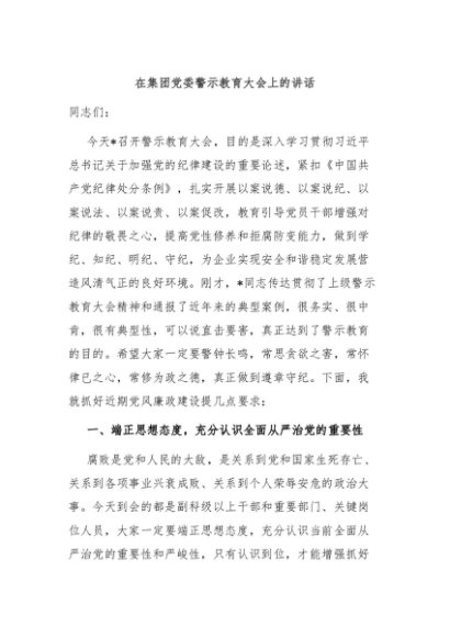 / 【七哥公文】2024年:在集团党委警示教育大会上的讲话+更多免费公文+VX:QiGeGongWen2024