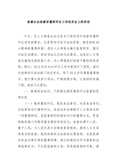 / 【七哥公文】2024年:检察长在检察官履职评议工作动员会上的讲话+更多免费公文+VX:QiGeGongWen2024