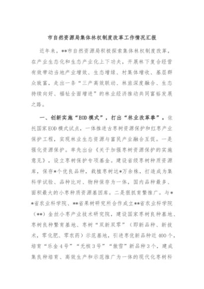 / 【七哥公文】2024年:市自然资源局集体林权制度改革工作情况汇报+更多免费公文+VX:QiGeGongWen2024